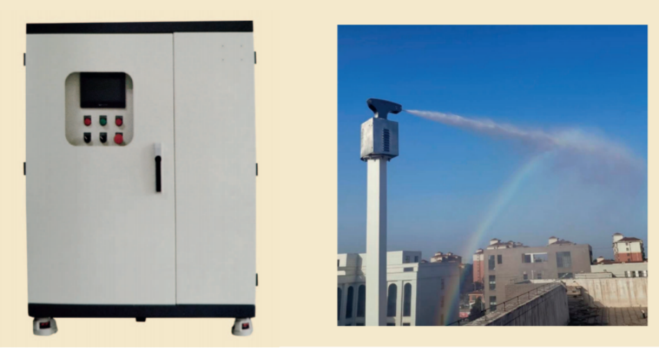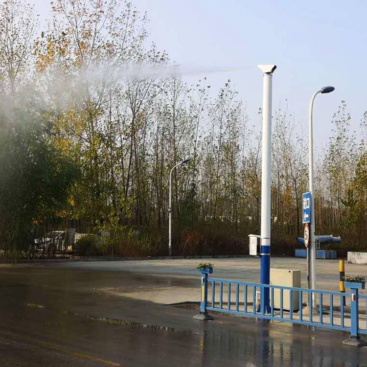 楓葉霧樁智能噴霧除塵系統(tǒng)是一種針對室外大范圍揚(yáng)塵場所的降塵設(shè)備,系統(tǒng)主機(jī)將水通過加壓輸送到遠(yuǎn)距離的高桿旋轉(zhuǎn)噴頭,高速噴射,霧化后的水汽能夠廣泛、充分的吸附空氣中的塵霾,從而達(dá)到有效的抑塵、降塵效果。